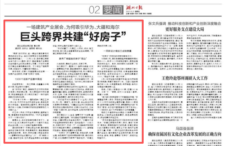 • 湖北日報:一場建筑產業展會,為何吸引華為、大疆和海爾巨頭跨界共建“好房子”